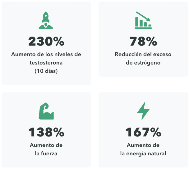 Reduce el cortisol y estimula la producción natural de testosterona.